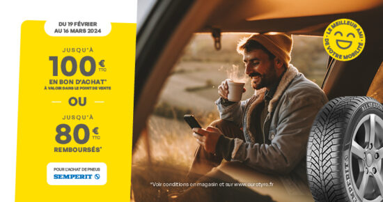Jusqu’à 150€ remboursés* pour l’achat de pneus Continental Du 18 mars au 27 avril, profitez de l’offre Continental pour l’achat de […]